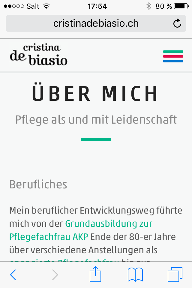 www.cristinadebiasio.ch, Kundenimage- und Infowebseite einer freischaffenden Pflegeexpertin im Onepage Layout